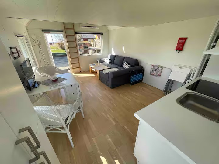 Szansa dla tych, którzy chcą zostać dłużej niż przez cały dzień i doświadczyć pięknego życia archipelagu i jak proste przed luksusem. Biały domek posiada połączony salon z kuchnią i loftem sypialnym. Obiekt znajduje się około 200 m od portu, w którym dodaje ruch archipelagu. Tam znajdziesz również żeglarza Pelles.