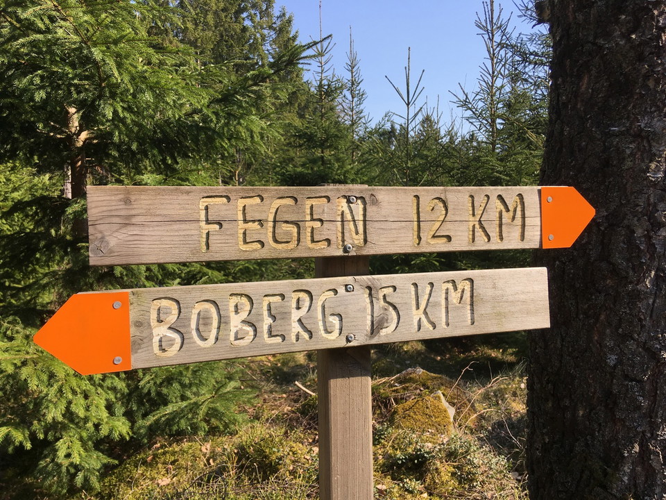 Na tym etapie wędrujecie głównie po rezerwacie przyrody Fegen, pokrywając zarówno jezioro, jak i otaczające go lasy, składające się głównie z lasów iglastych, ale z elementami drewna twardego i lasów książkowych. Chodzisz głównie po żwirowych leśnych drogach i szlakach. W Sandvik, można połączyć się z szlakiem GG, aby zabrać cię Burserid, który ma przystanek autobusowy. W Sandvik jest woda pitna na północnym geel kabiny socken. Obóz Grävlingabackarna zapewnia ochronę przed wiatrem, miejsce do grillowania, drewniane przechowywanie i torrtoa i jest odosobniony nad morzem.