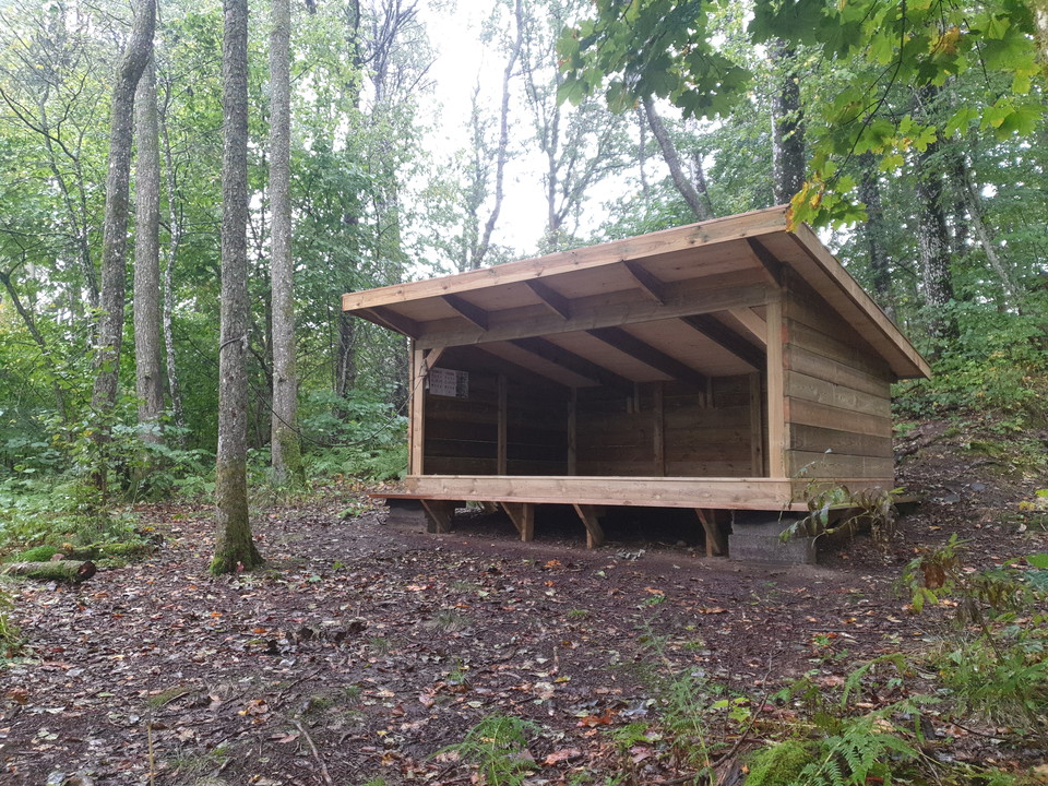 Bra, stabilt vindskydd. Tyvärr på tok för nära campingen, vi valde att sova längre ut i skogen där man kan vara ostörd.