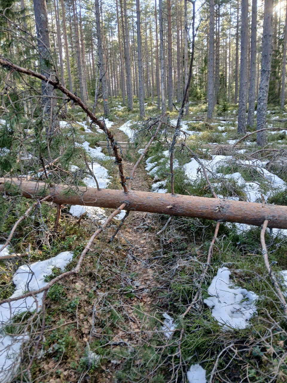 Fortfarande ligger det många träd över våra märkta stigar och leder. Vi kommer inte kunna såga upp alla träd under våren men jobbar på där vi kan. I första hand måste markägarna ha möjligheten att ta reda på träden.