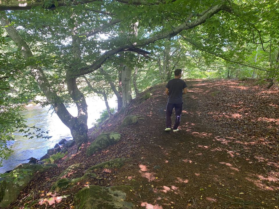 Längs vägen finns 13 skyltar som berättar om allt från laxens livscykel och åns artrikedom till gamla fiskemetoder, fågelliv och människorna som levt vid ån.