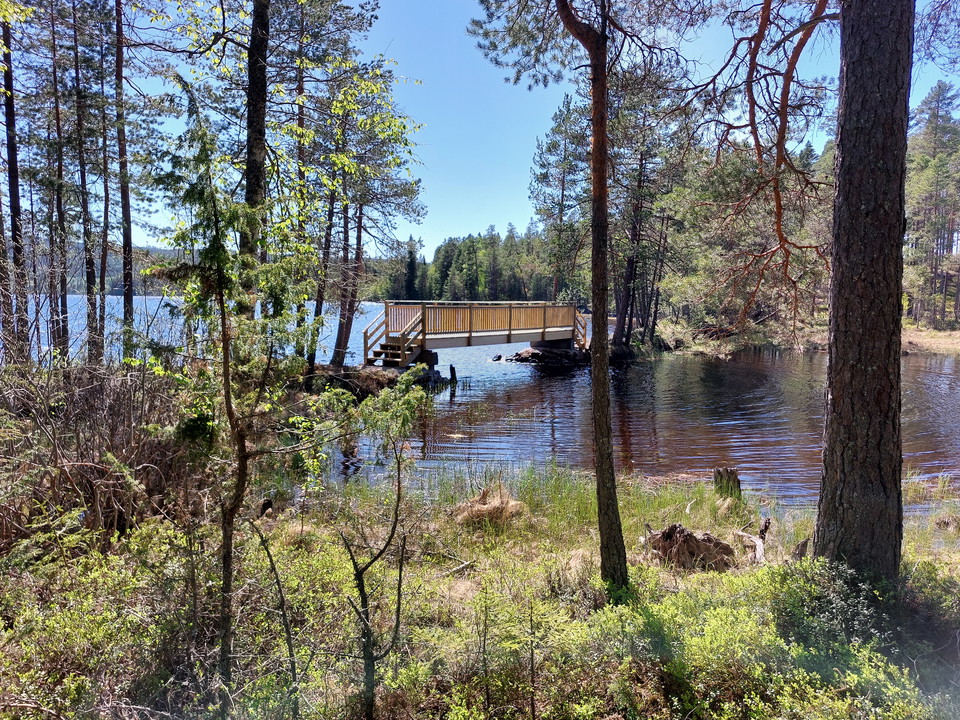 Längs vägen passerar man bänkbord i Skinnaråsens fäbodar och i byn Skålhol där det också är en liten badplats.