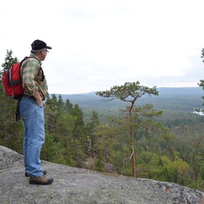 Vi gick strövstigen från predikstolen men vek av efter myrarna då stigen var ganska igenväxt. Det blev cirka 5 km i väldigt kuperad terräng i skog innan vi var tillbaka vid predikstolen och fick njuta av fantastisk utsikt och fika.