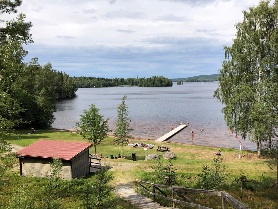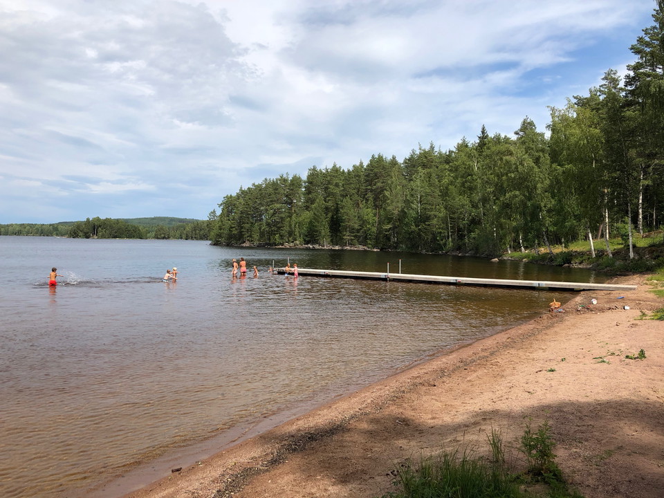 Badet ligger nedanför parkeringen som är vid vägen. Därifrån går en ganska brant, lång trappa. Omklädningsrum, grillplats och torrdass. Gräsyta och sandstrand, väldigt långgrunt.