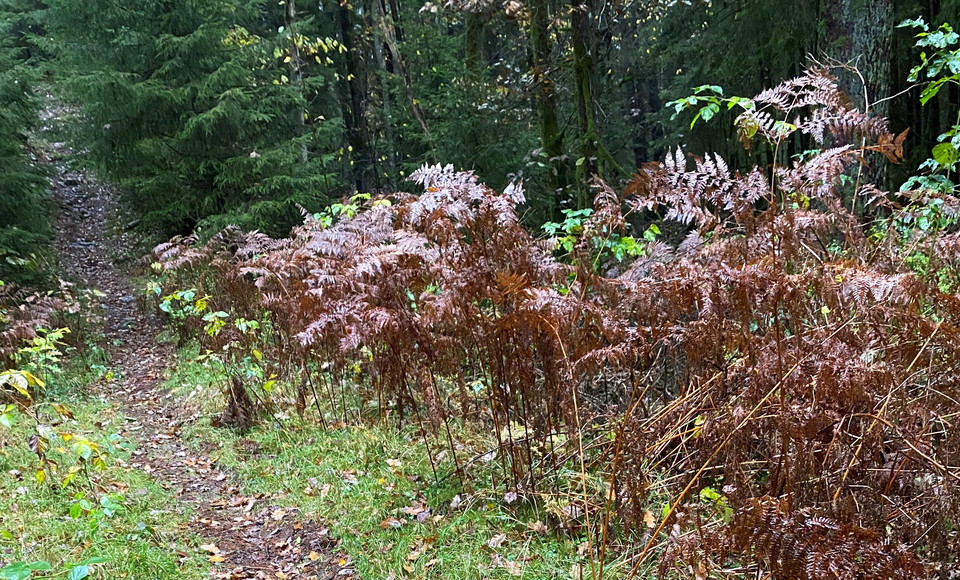Ganska lätt slinga, kuperad på några ställen. Delvis skogsbilsväg, men i helhet öppen granskog som är väl uppmärkt. Stigarna är lätta att gå på, lite blött på några ställen (oktober) men inte värre än att det funkar med vanliga vandringskängor.