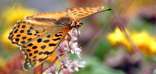 Blommor och fjärilar trivs på ängen