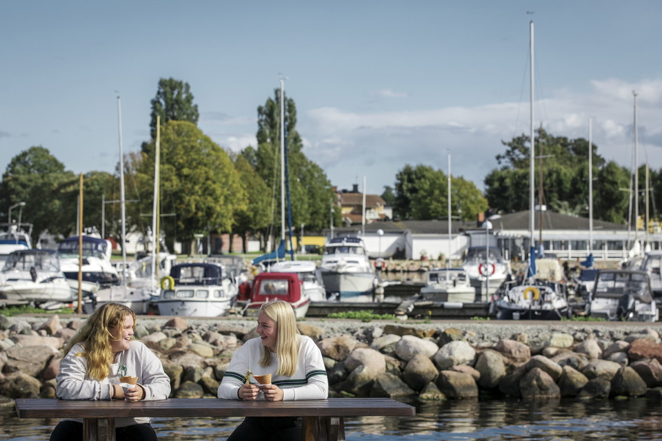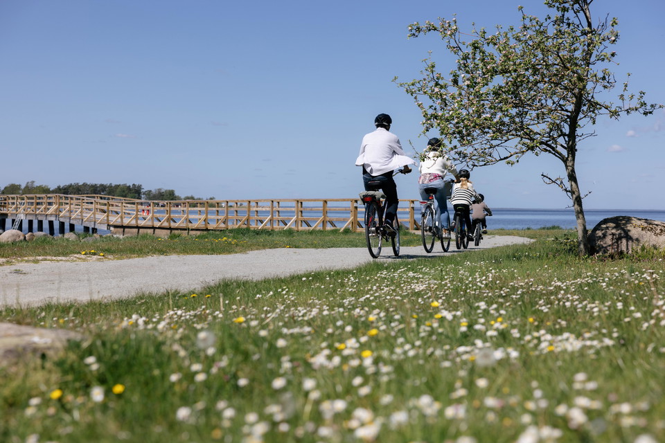 Vi startar vid hamnen i Borgholm. Det är så nära medelhavskänsla vi kommer i den här delen av landet. Vi slingrar oss försiktigt norr ut längs med vattnet, på strandpromenaden mot Köpingsvik. Redan efter någon kilometer erbjuder den här turen fantastiska utblickar över sundet.