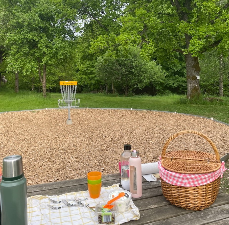 Vill du prova? Du kan låna discar helt gratis i servicecenter i Älmhults kommunhus. Har du en vanlig frisbee hemma fungerar det också fint för en första runda. Vid startpunkten finns dessutom en informationstavla som visar banans layout och förklarar grunderna.