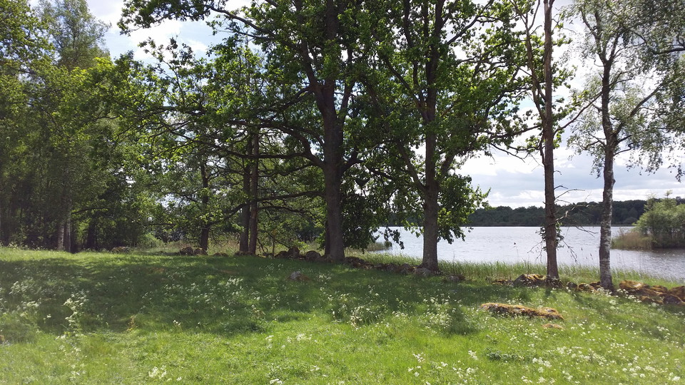 Kalvsvik ligger cirka två mil söder om Växjö. Vandringen börjar vid Kalvsviks bygdegård längs vägen mot Kalvsviks kyrka och Jät.