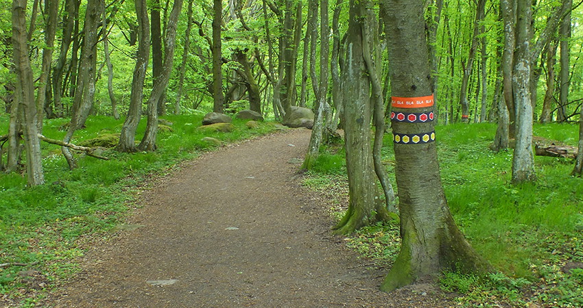 Denna led tar dig från huvudentrén norrut genom avenbokskogen, förbi alkärret, via norra entrén och arboretet tillbaka genom ekskogen på Stenshuvuds östra sida. Du passerar även sandstranden innan leden viker av upp mot huvudentrén och naturum. Denna led är bitvis väldigt stenig.