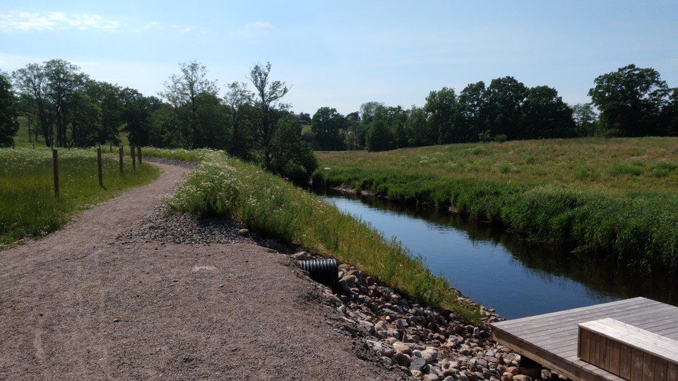 Från backarna har du en fin utsikt mot Bjersgårds skogar och betesmarker. Slå dig ner på en bänk och njut av vyn! Ofta kretsar en eller flera röda glador över fälten och på sommaren jagar olika svalor här. Året om hörs lockläten eller sång av steglits, grönfink och gulsparv. Sitter du vid rastplatsen vid ån är chansen stor att se kungsfiskare och forsärla. På sommaren blommar här hampflockel och fackelblomster.