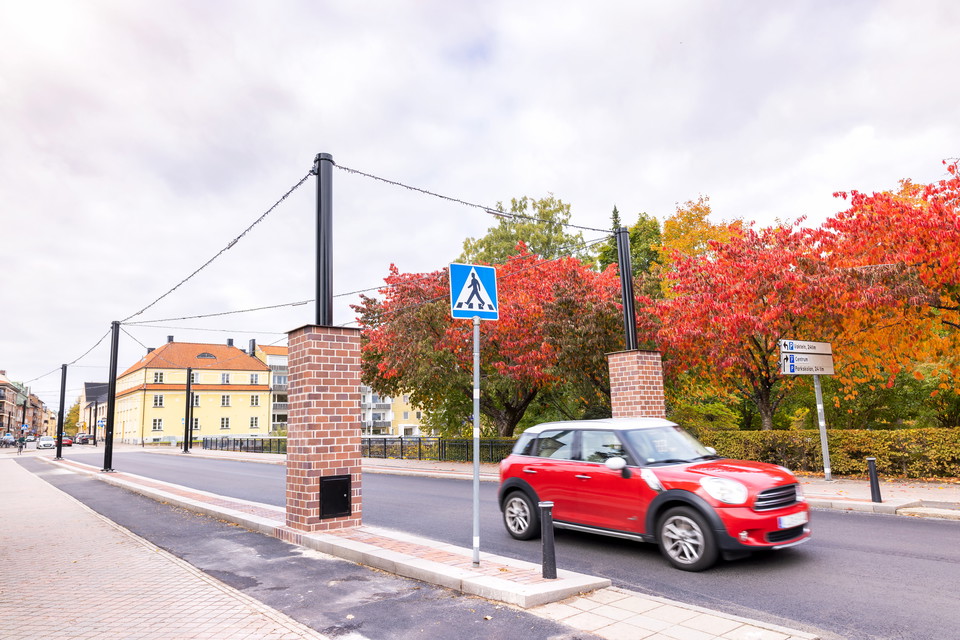 Tegelbruksbron byggdes 1963 och knyter samman Laxgatan och Östra vägen. Den föregicks av en järnbro. Bron var en förutsättning för att man lätt skulle kunna ta sig till bla Villans Tegelbruk.
