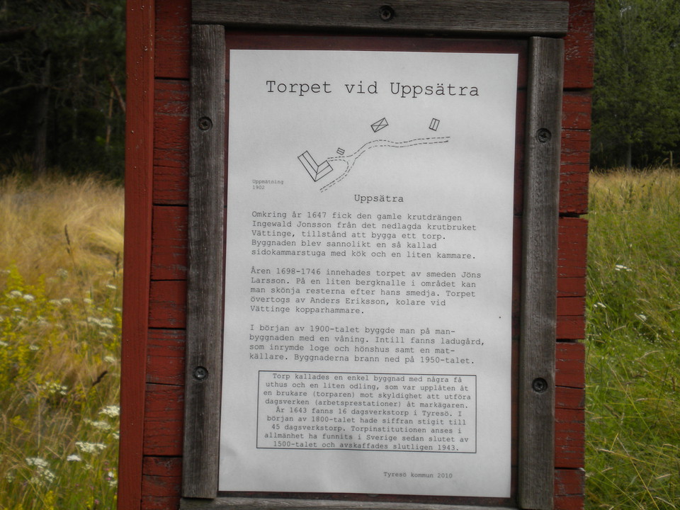 Omkring år 1647 fick den gamle krutdrängen Ingewald Jonssonfrån det nedlagda krutbruket Vättinge tillstånd att bygga ett torp. Byggnaden blev sannolikt en så kallad sidokammarstuga med kök och en liten kammare.