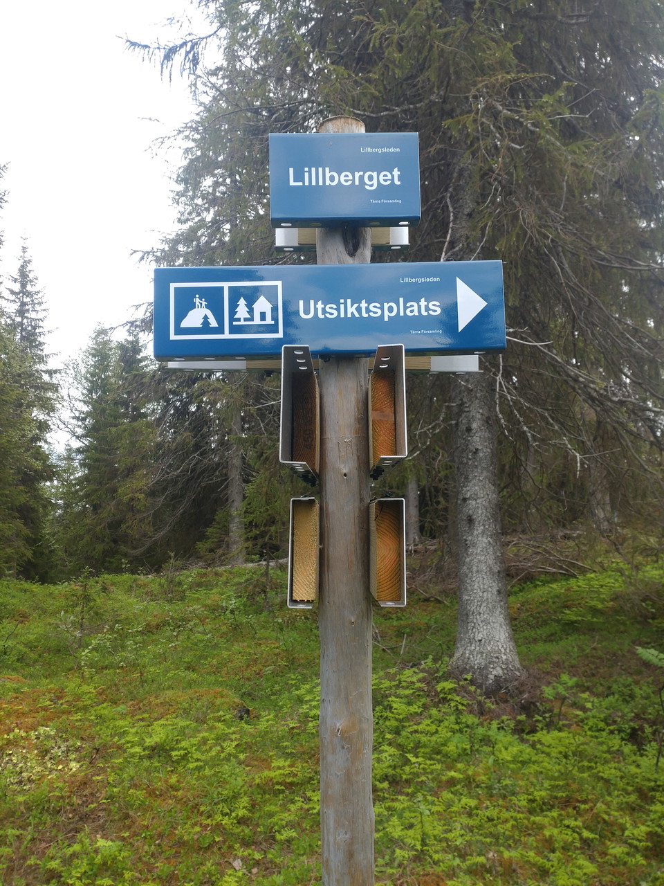 - Lillbergsleden från Tärnaby sporthotell - via barnbacken: Från ledstartskylten håller man höger upp i barnbacken. Blå käppar hjälper till att hitta över bäck och till en tydlig stig som går i skogen under lillberget. Sista biten mot utsikten är lite brantare stigning.